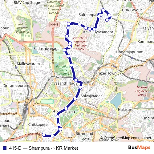 Bus 415-D - Shampura ⇔ KR Market in Bengaluru: Stops & Timetable
