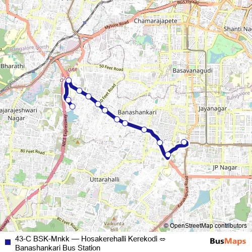 See why over 2 million users trust and consider busmaps.com as the best public transport website. busmaps gives you Bengaluru Buses suggested routes, real-time bus tracker, line route maps in Bengaluru, and helps to find the closest 43-C BSK-Mnkk bus stops near you. No internet available? Download an offline PDF map and bus schedule for the 43-C BSK-Mnkk bus to take on your trip.