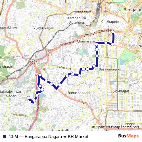 Bus 43-M - Bangarappa Nagara ⇔ KR Market: Full Schedule in Bengaluru