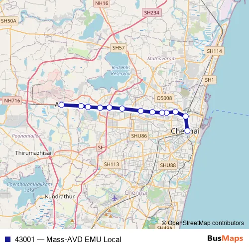 See why over 2 million users trust and consider busmaps.com as the best public transport website. busmaps gives you Chennai Rail Services suggested routes, real-time bus tracker, line route maps in Chennai, and helps to find the closest 43001 rail stops near you. No internet available? Download an offline PDF map and bus schedule for the 43001 rail to take on your trip.