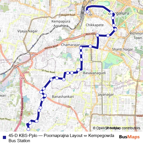 Poornaprajna Layout. 45-D KBS-Pplo (Poornaprajna Layout ⇔ Kempegowda Bus Station) is operational during everyday.