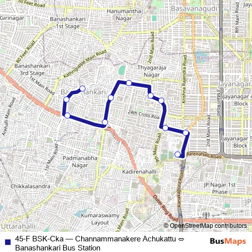 Bus 45-F BSK-Cka - Channammanakere Achukattu ⇔ Banashankari Bus Station in Bengaluru: Stops & Timetable