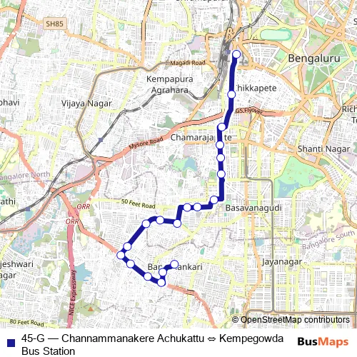 See why over 2 million users trust and consider busmaps.com as the best public transport website. busmaps gives you Bengaluru Buses suggested routes, real-time bus tracker, line route maps in Bengaluru, and helps to find the closest 45-G bus stops near you. No internet available? Download an offline PDF map and bus schedule for the 45-G bus to take on your trip.