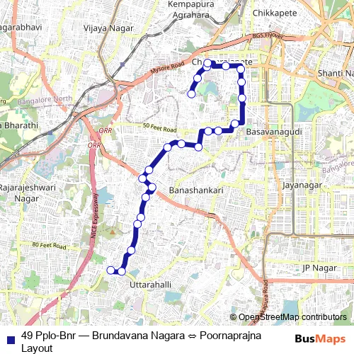 Bus 49 Pplo-Bnr - Brundavana Nagara ⇔ Poornaprajna Layout in Bengaluru: Stops & Timetable