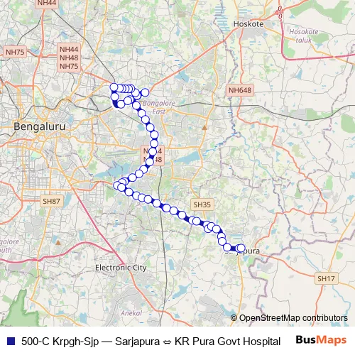 Sarjapura. 500-C Krpgh-Sjp (Sarjapura ⇔ KR Pura Govt Hospital) is operational during everyday.