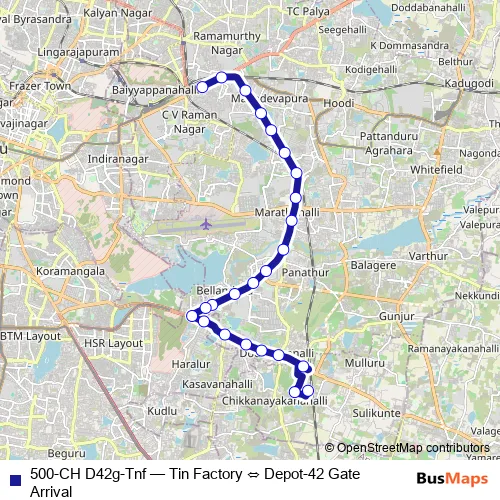 Bus 500-CH D42g-Tnf - Tin Factory ⇔ Depot-42 Gate Arrival: Full Schedule in Bengaluru
