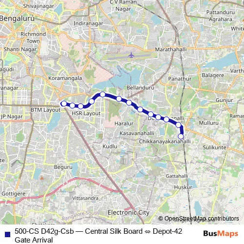 Click here to view the nearest 500-CS D42g-Csb - Central Silk Board ⇔ Depot-42 Gate Arrival bus stop.