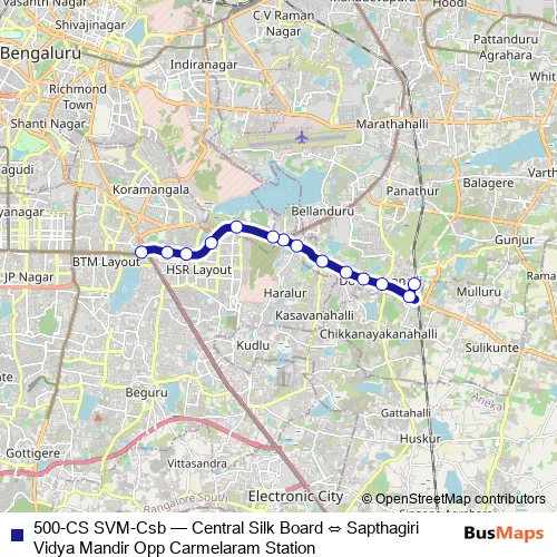 Bus 500-CS SVM-Csb - Central Silk Board ⇔ Sapthagiri Vidya Mandir Opp Carmelaram Station: Full Schedule in Bengaluru