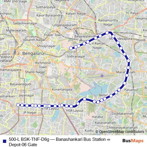 See why over 2 million users trust and consider busmaps.com as the best public transport website. busmaps gives you Bengaluru Buses suggested routes, real-time bus tracker, line route maps in Bengaluru, and helps to find the closest 500-L BSK-TNF-D6g bus stops near you. No internet available? Download an offline PDF map and bus schedule for the 500-L BSK-TNF-D6g bus to take on your trip.
