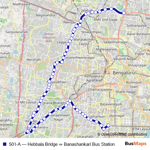 Bus 501-A - Hebbala Bridge ⇔ Banashankari Bus Station Schedule in Bengaluru