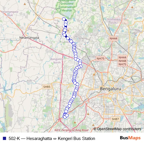 Bus 502-K - Hesaraghatta ⇔ Kengeri Bus Station in Bengaluru: Stops & Timetable