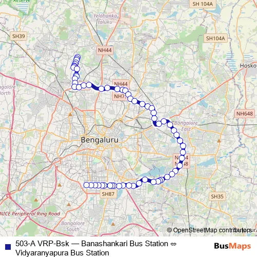 Banashankari Bus Station. 503-A VRP-Bsk (Banashankari Bus Station ⇔ Vidyaranyapura Bus Station) is operational during everyday.