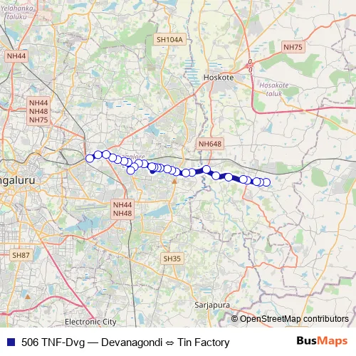See why over 2 million users trust and consider busmaps.com as the best public transport website. busmaps gives you Bengaluru Buses suggested routes, real-time bus tracker, line route maps in Bengaluru, and helps to find the closest 506 TNF-Dvg bus stops near you. No internet available? Download an offline PDF map and bus schedule for the 506 TNF-Dvg bus to take on your trip.