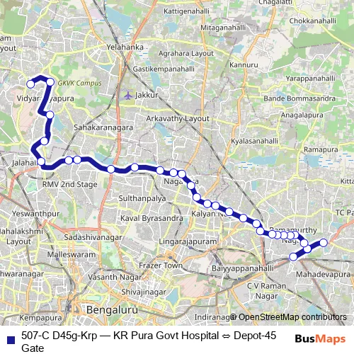 See why over 2 million users trust and consider busmaps.com as the best public transport website. busmaps gives you Bengaluru Buses suggested routes, real-time bus tracker, line route maps in Bengaluru, and helps to find the closest 507-C D45g-Krp bus stops near you. No internet available? Download an offline PDF map and bus schedule for the 507-C D45g-Krp bus to take on your trip.