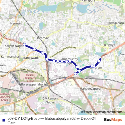 See why over 2 million users trust and consider busmaps.com as the best public transport website. busmaps gives you Bengaluru Buses suggested routes, real-time bus tracker, line route maps in Bengaluru, and helps to find the closest 507-DY D24g-Bbsp bus stops near you. No internet available? Download an offline PDF map and bus schedule for the 507-DY D24g-Bbsp bus to take on your trip.