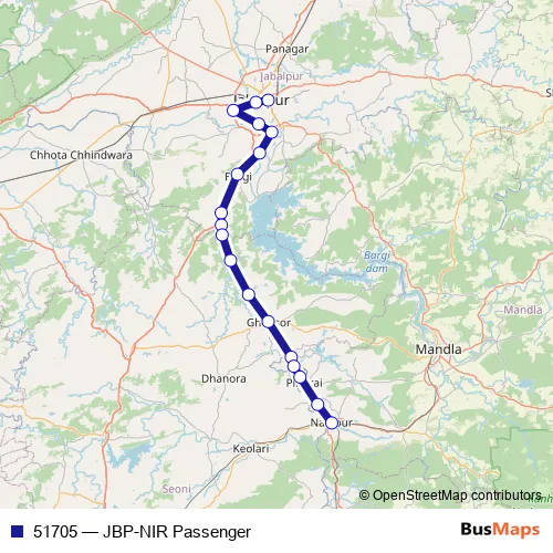 The first stop of the 51705 rail route is Jabalpur and the last stop is Nainpur Jn. 51705 (JBP-NIR Passenger) is operational during everyday.