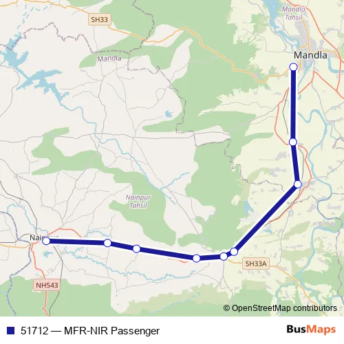 The first stop of the 51712 rail route is Mandla Fort and the last stop is Nainpur Jn. 51712 (MFR-NIR Passenger) is operational during everyday.