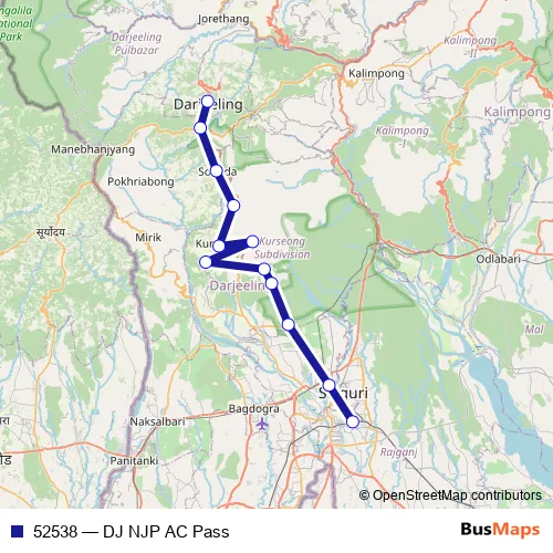 See why over 2 million users trust and consider busmaps.com as the best public transport website. busmaps gives you Kurseong Rail Services suggested routes, real-time bus tracker, line route maps in Kurseong, and helps to find the closest 52538 rail stops near you. No internet available? Download an offline PDF map and bus schedule for the 52538 rail to take on your trip.