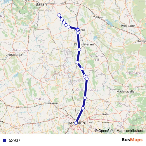 See why over 2 million users trust and consider busmaps.com as the best public transport website. busmaps gives you Anantapur Buses suggested routes, real-time bus tracker, line route maps in Anantapur, and helps to find the closest 52937 bus stops near you. No internet available? Download an offline PDF map and bus schedule for the 52937 bus to take on your trip.