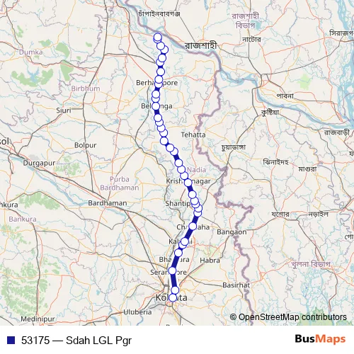 The first stop of the 53175 rail route is Sealdah and the last stop is Lalgola. 53175 (Sdah LGL Pgr) is operational during everyday.