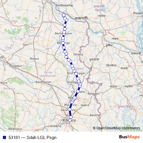 The first stop of the 53181 rail route is Sealdah and the last stop is Lalgola. 53181 (Sdah LGL Psgn) is operational during everyday.