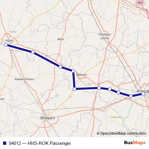 The first stop of the 54012 rail route is Hansi and the last stop is Rohtak Jn. 54012 (HNS-ROK Passenger) is operational during everyday.