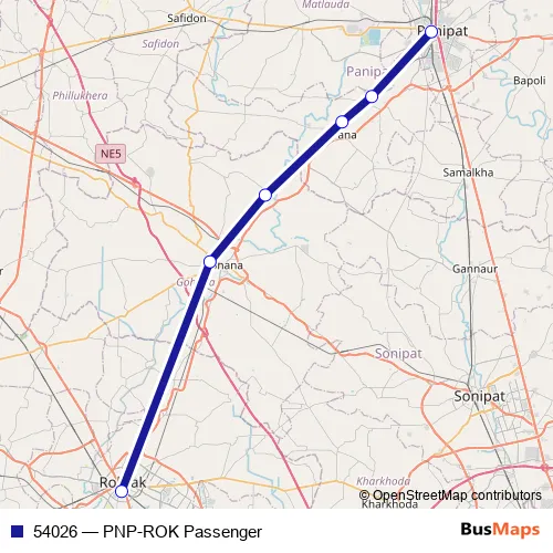 The first stop of the 54026 rail route is Panipat Jn and the last stop is Rohtak Jn. 54026 (PNP-ROK Passenger) is operational during everyday.