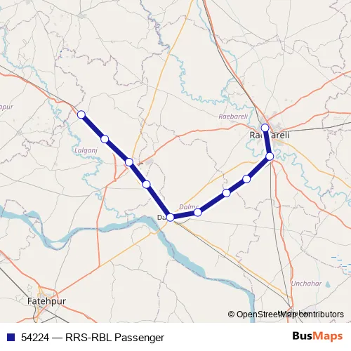 The first stop of the 54224 rail route is Raghuraj Singh and the last stop is RAE Bareli Jn. 54224 (RRS-RBL Passenger) is operational during everyday.