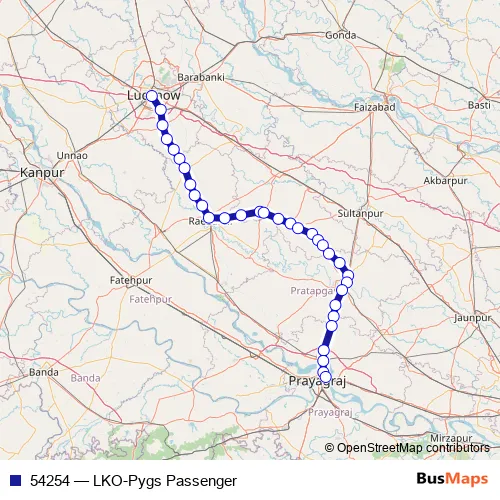 The first stop of the 54254 rail route is Lucknow Jn. and the last stop is Prayagraj Sangam. 54254 (LKO-Pygs Passenger) is operational during everyday.