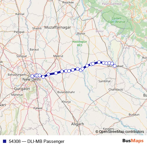 The first stop of the 54308 rail route is Delhi Jn. and the last stop is Moradabad. 54308 (DLI-MB Passenger) is operational during everyday.
