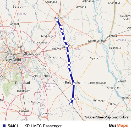 The first stop of the 54401 rail route is Khurja Jn and the last stop is Meerut City. 54401 (KRJ-MTC Passenger) is operational during everyday.