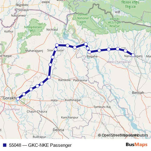 Rail 55048 - GKC-NKE Passenger in Bagaha: Stops & Timetable
