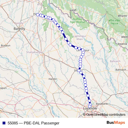 The first stop of the 55085 rail route is Pilibhit Jn and the last stop is Daliganj Jn.. 55085 (PBE-DAL Passenger) is operational during everyday.
