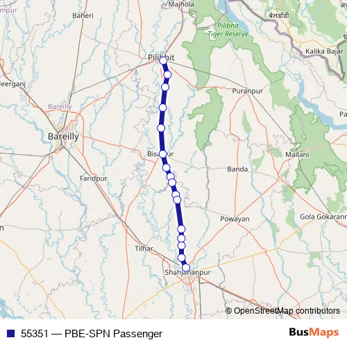 The first stop of the 55351 rail route is Pilibhit Jn and the last stop is Shahjehanpur. 55351 (PBE-SPN Passenger) is operational during everyday.