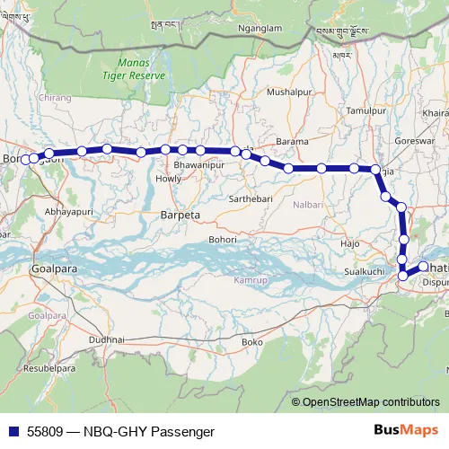 Rail 55809 - NBQ-GHY Passenger: Full Schedule in Dispur