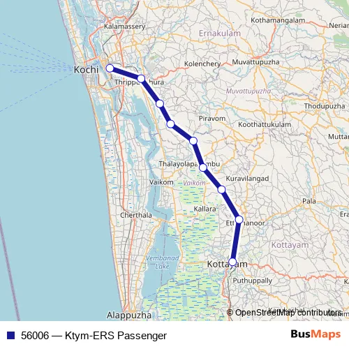 The first stop of the 56006 rail route is Kottayam and the last stop is Ernakulam Jn. 56006 (Ktym-ERS Passenger) is operational during everyday.