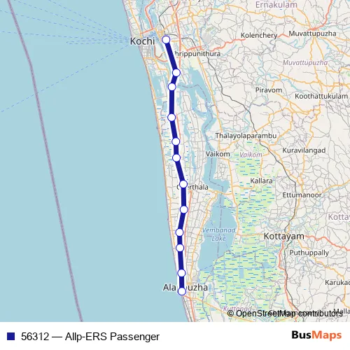 The first stop of the 56312 rail route is Alappuzha and the last stop is Ernakulam Jn. 56312 (Allp-ERS Passenger) is operational during everyday.