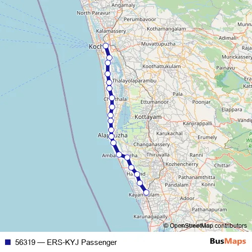 Rail 56319 - ERS-KYJ Passenger: Full Schedule in Alappuzha