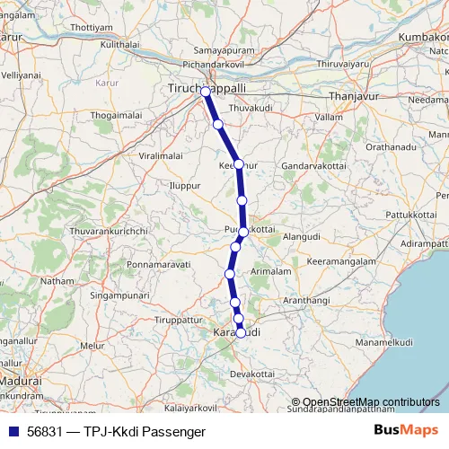 Rail 56831 - TPJ-Kkdi Passenger: Full Schedule in Kanadukattan