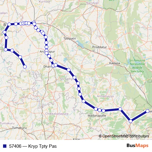 The first stop of the 57406 rail route is Kadiridevarapalli and the last stop is Tirupati. 57406 (Kryp Tpty Pas) is operational during everyday.