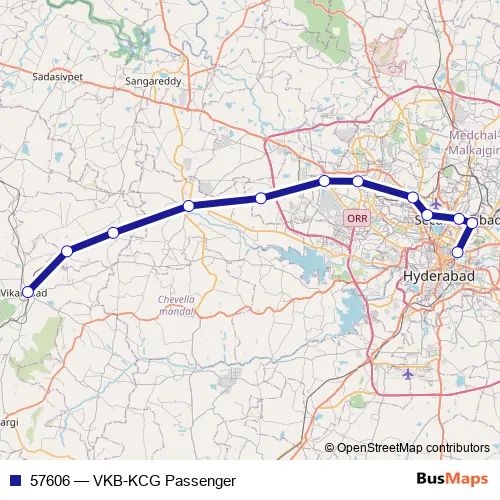 The first stop of the 57606 rail route is Vikarabad Jn and the last stop is Kacheguda. 57606 (VKB-KCG Passenger) is operational during everyday.