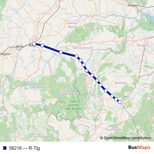 The first stop of the 58218 rail route is Raipur Jn. and the last stop is Titlagarh. 58218 (R-Tig) is operational during everyday.