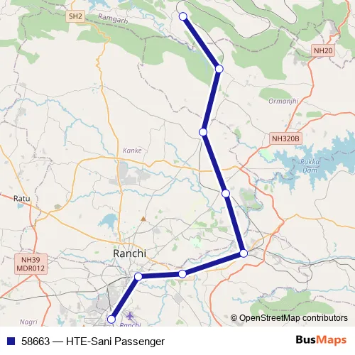 The first stop of the 58663 rail route is Hatia and the last stop is Shanki. 58663 (HTE-Sani Passenger) is operational during everyday.