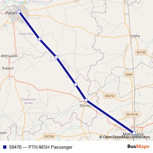 The first stop of the 59476 rail route is Patan and the last stop is Mahesana Jn. 59476 (PTN-MSH Passenger) is operational during everyday.