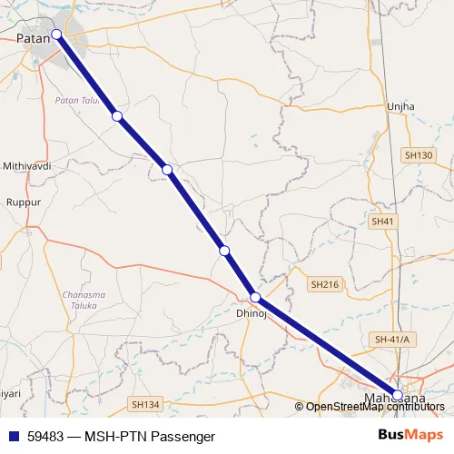 The first stop of the 59483 rail route is Mahesana Jn and the last stop is Patan. 59483 (MSH-PTN Passenger) is operational during everyday.