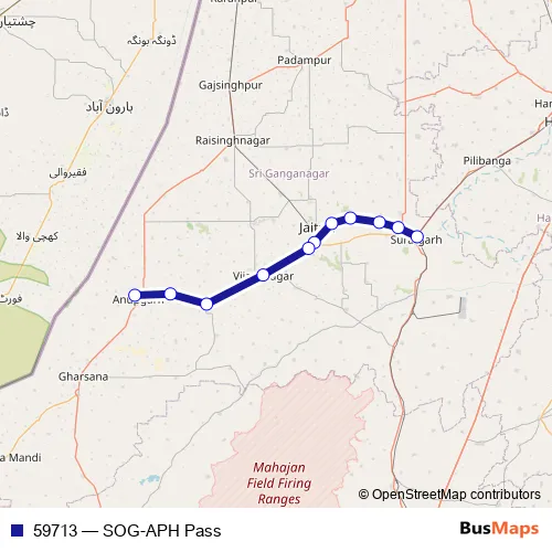 The first stop of the 59713 rail route is Suratgarh Jn and the last stop is Anupgarh. 59713 (SOG-APH Pass) is operational during everyday.