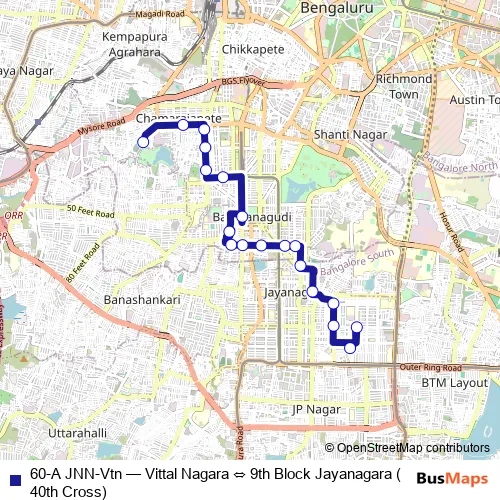 Bus 60-A JNN-Vtn - Vittal Nagara ⇔ 9th Block Jayanagara (40th Cross): Full Schedule in Bengaluru