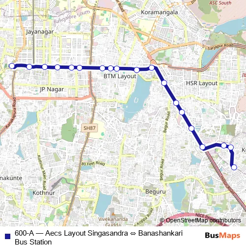 600-A Bus - Aecs Layout Singasandra ⇔ Banashankari Bus Station