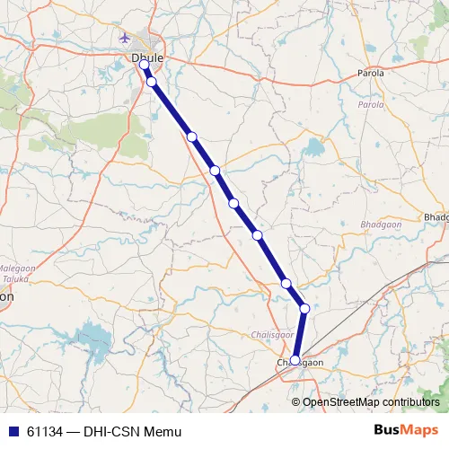 The first stop of the 61134 rail route is Dhule and the last stop is Chalisgaon Jn. 61134 (DHI-CSN Memu) is operational during everyday.