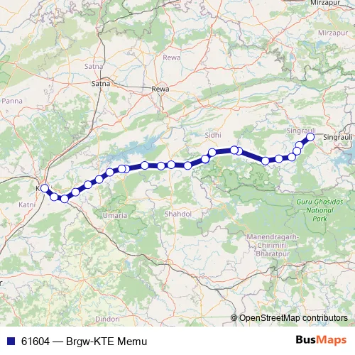 The first stop of the 61604 rail route is Bargawan and the last stop is Katni. 61604 (Brgw-KTE Memu) is operational during everyday.